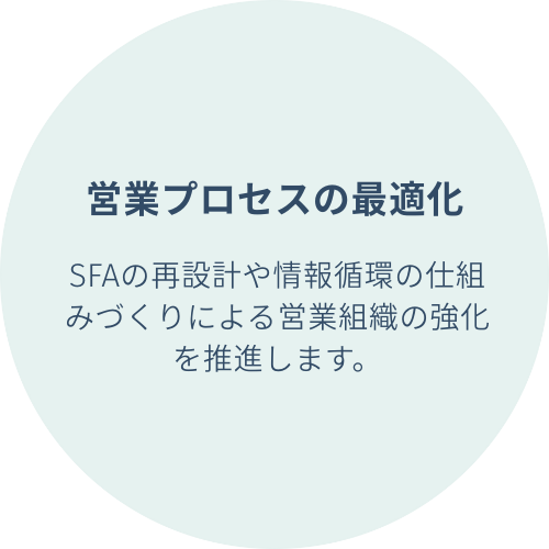 SFAの再設計や情報循環の仕組みづくりによる営業組織の強化を推進します。